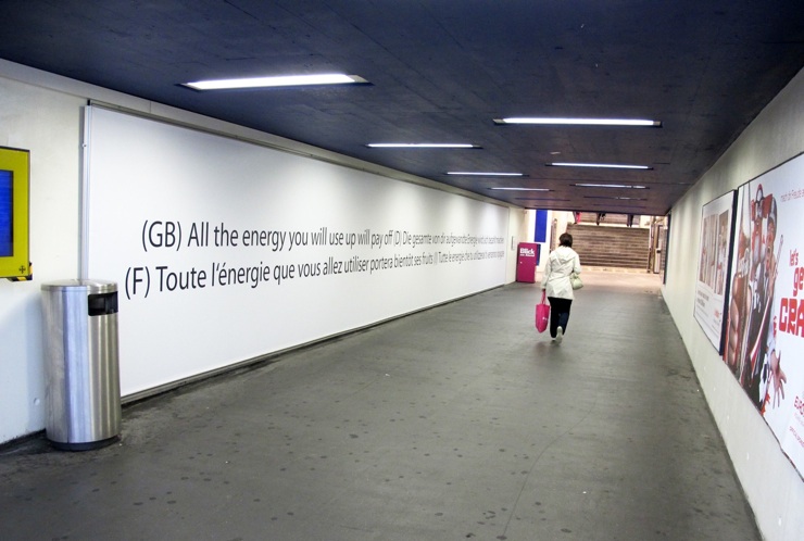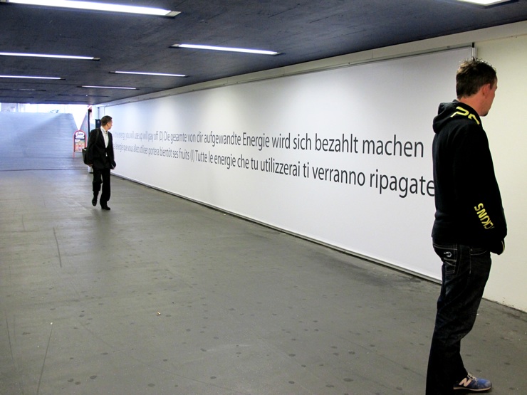 1/10 (FORTUNE COOKIE), INSTALLATION IM OEFFENTLICHEN RAUM UNTERFÜHRUNG HARDBRÜCKE ZÜRICH 2012 S/W DRUCK AUF PLANE, 1600 X 215 CM