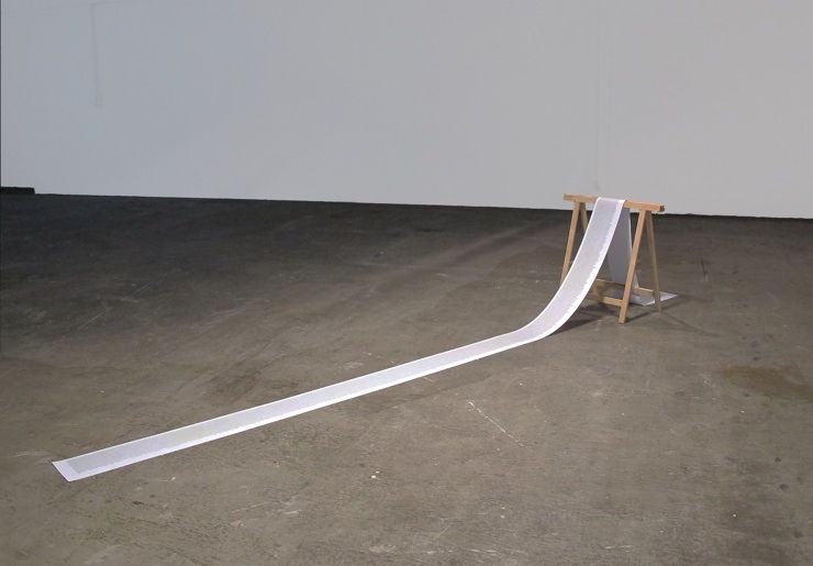 RETURNING MESSAGE TO SENDER, 2012, MARKER AUF S/W-DRUCK, HOLZ, 75 X 65 X 520 CM