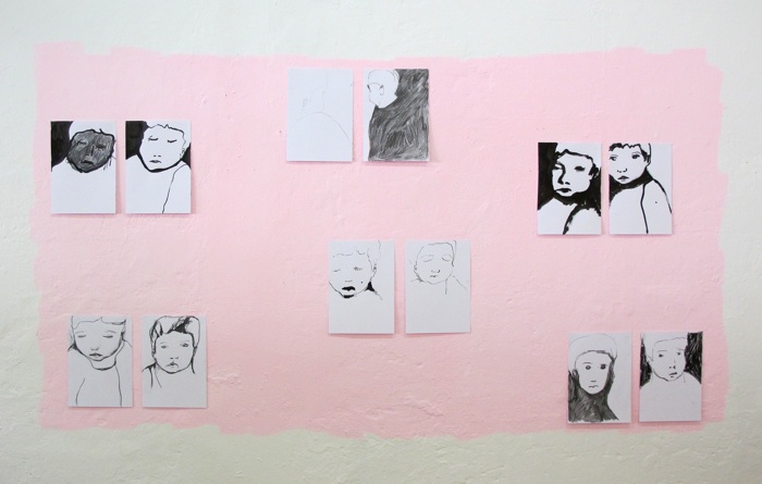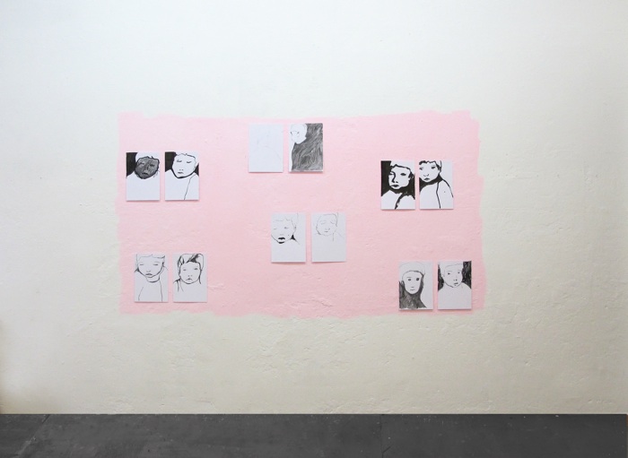 TUSCHE, BLEISTIFT, PASTELLKREIDE, KOHLE AUF PAPIER, ACRYL-/DISPERSIONSFARBEFARBE AUF WAND