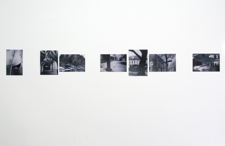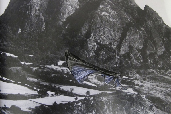 SUBKONTINENTE, 2016, SIEBEN PIGMENTDRUCKE VON FOTOGRAFIEN DER ABBILDUNGEN EINES BUCHES, VON 132 AUSSCHNITTEN DURCHDRUNGEN, VOR SEINER KOMPLETTEN ÜBERMALUNG, 28 X 220 CM