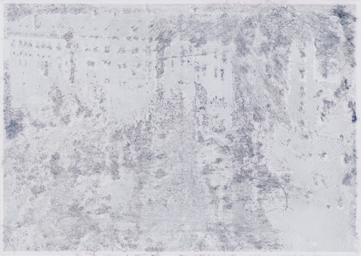 HAUS, 2016, FARBDRUCK DES SCANS EINES NICHT HAFTENDEN TINTENSTRAHL-FOLIENDRUCKS NACH SEINER ZEITWEILIGEN ARCHIVIERUNG, 42 X 59,4 CM